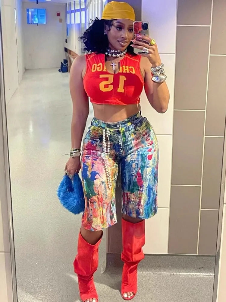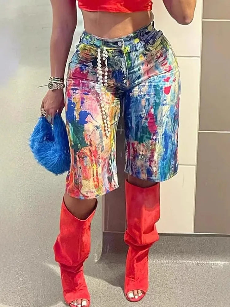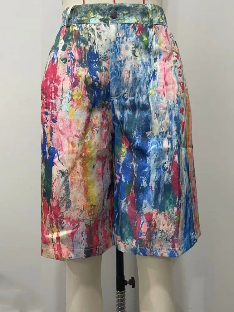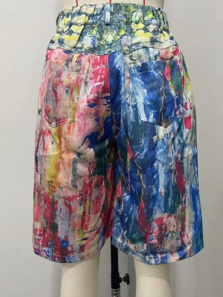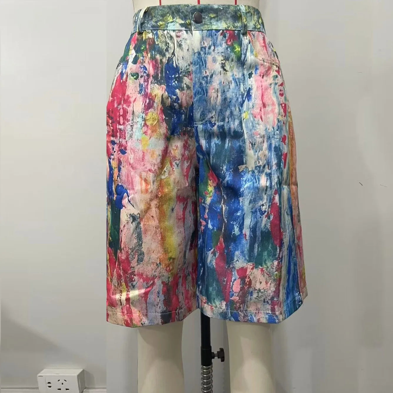 2025 Summer New Women's Pockets Graffiti Shorts Hot Casual Polyester Shorts Mid Waist Short Fashion Streetwear Short Pants
