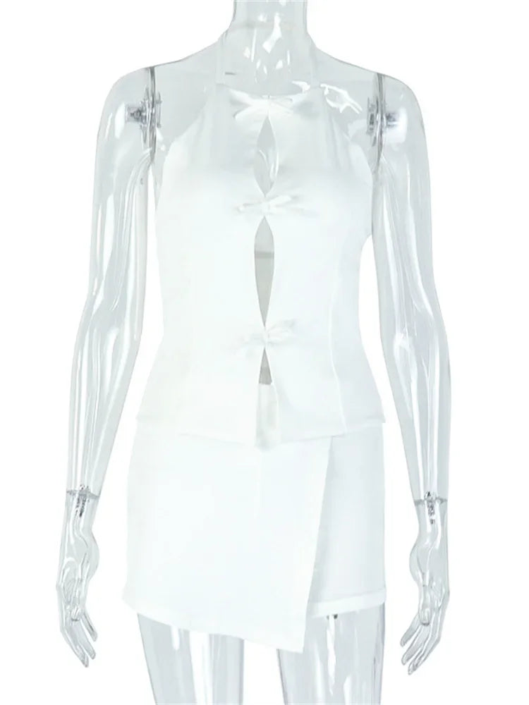 Leosoxs Irregular Sexy 2 Piece Set Women Halter Hollow Knot Backless Tops+Skinny Peach Hip Skirts Midnight Hottie Wild Suits