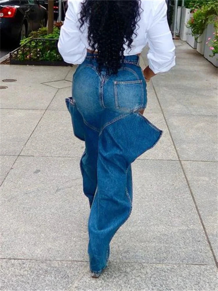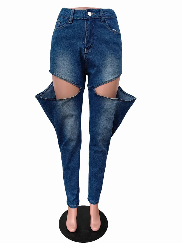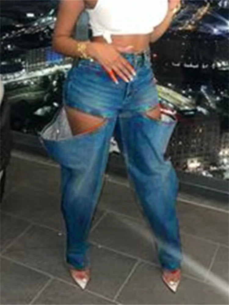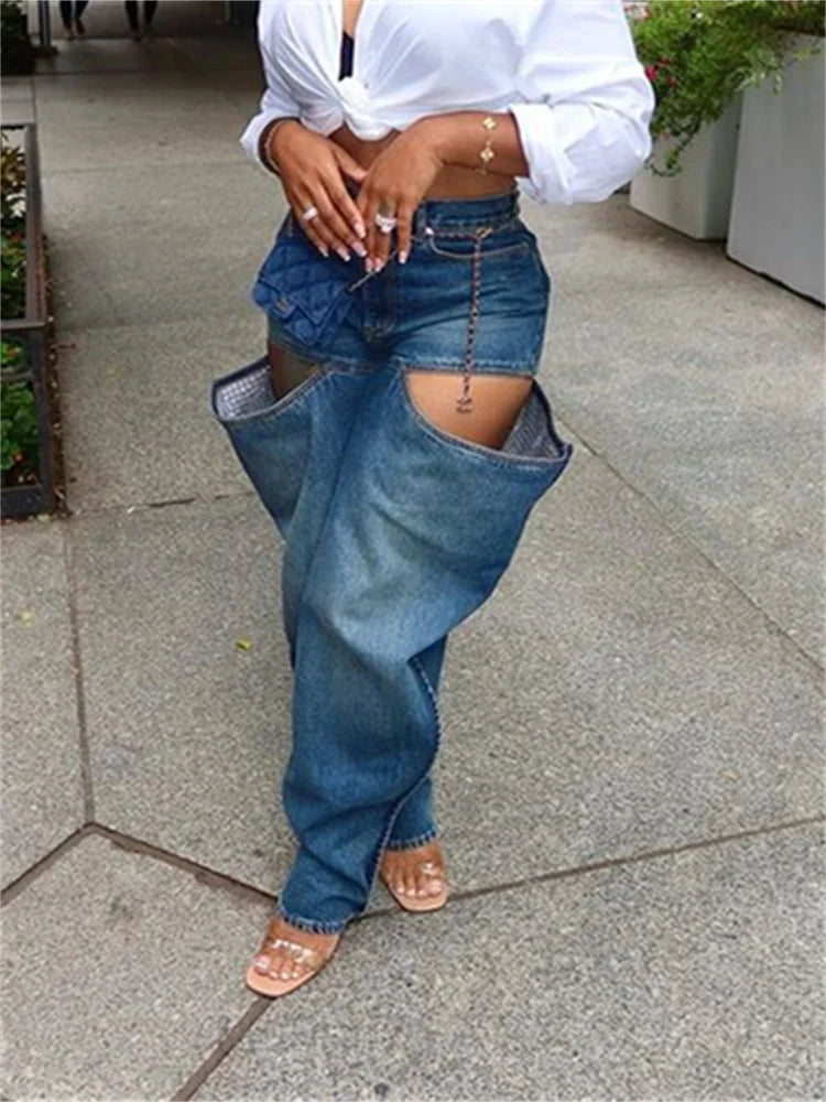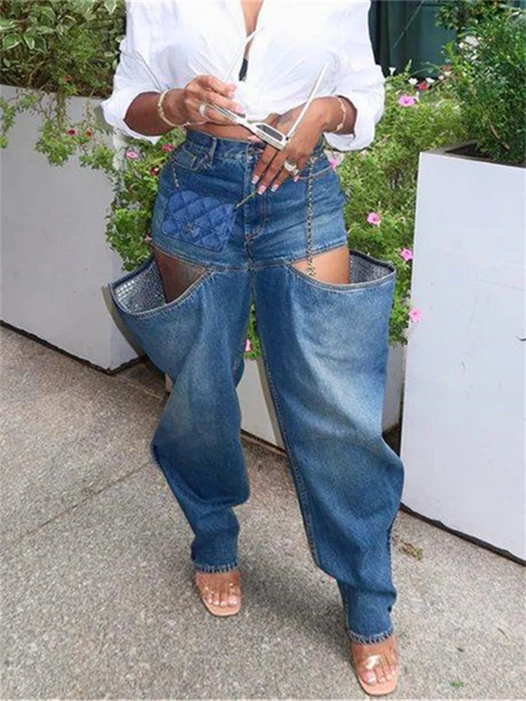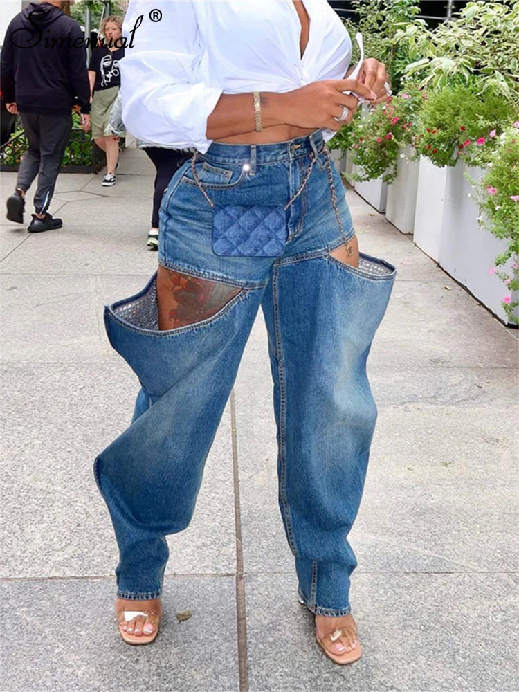 Simenual Fashion Streetwear Bottoms Punk Grunge Blue Hollow Out Loose Denim Pants Casual Y2K Rave Zip Cargo Trousers Indie Jeans